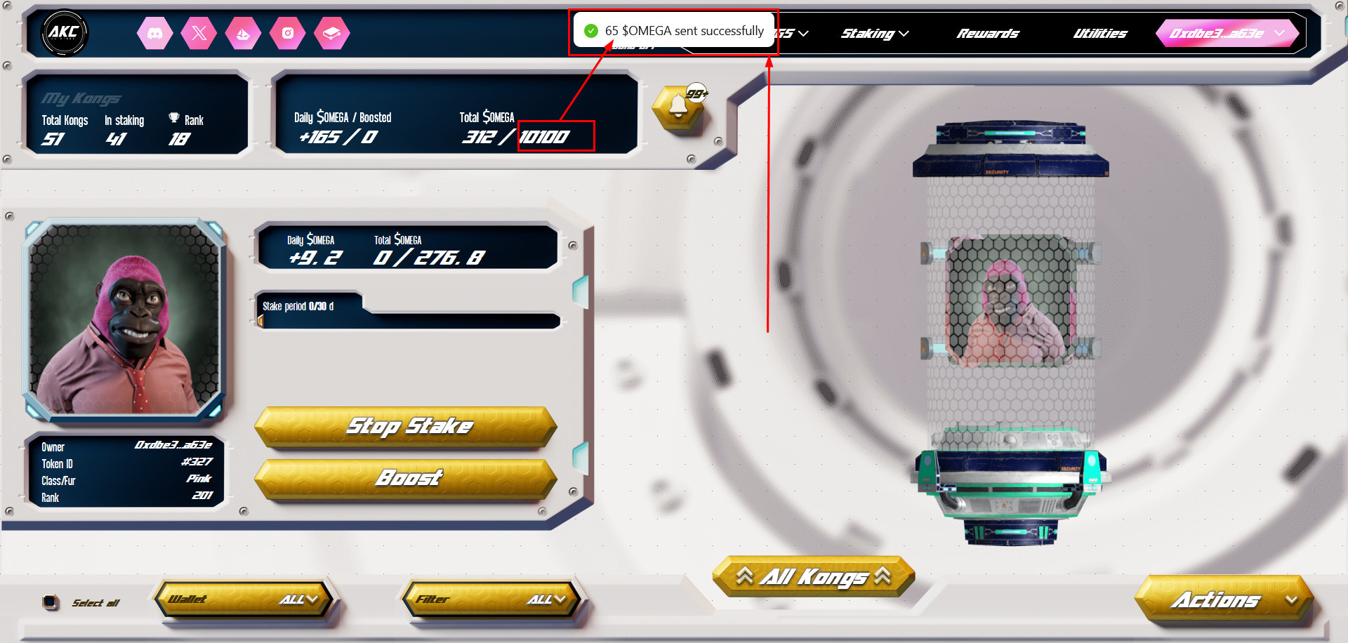 You can now send $OMEGA coins to another AKC holder!